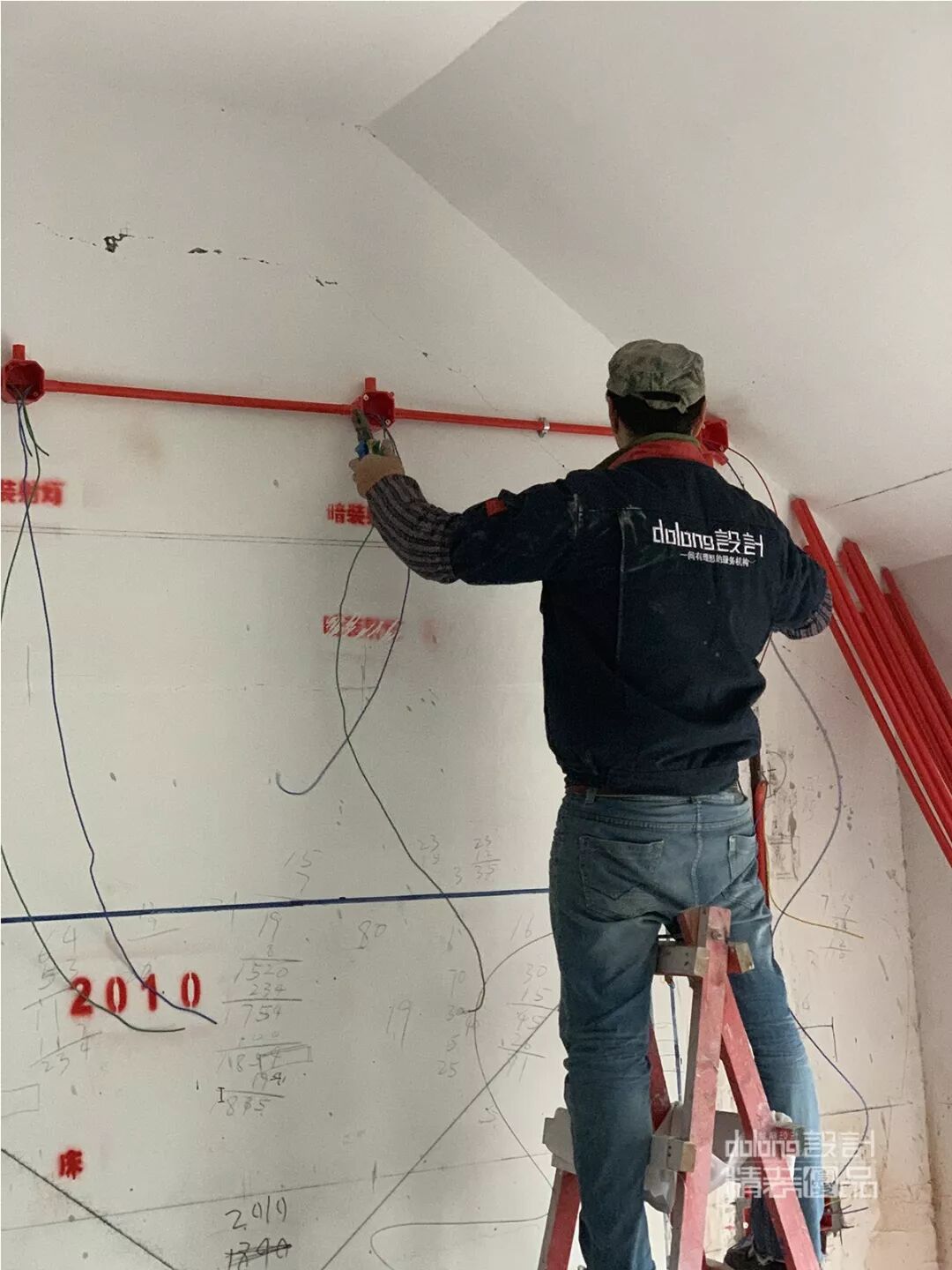 ▼DoLong董龍设计丨精装优品针对所有的电线均在弹线开槽后,先铺设管线,再进行穿线