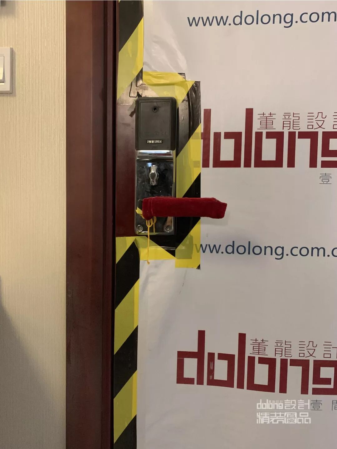 ▼精装房施工前,会进场把未施工区域门锁好,并贴标签提醒;