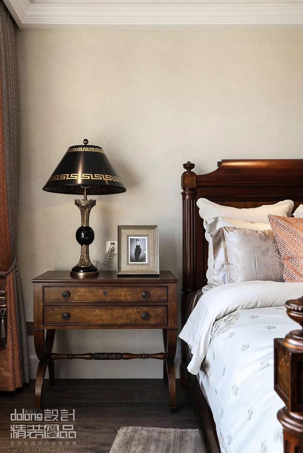 主卧以大量的木质元素,以及米灰色的墙体,调制出温暖的生活情调,皇帝床的选择,让主卧更偏硬朗,有了男主人的性格,灰色窗帘的一抹橙和蕾丝花瓣的水晶灯的点缀,似乎让空间变得柔美了起来。