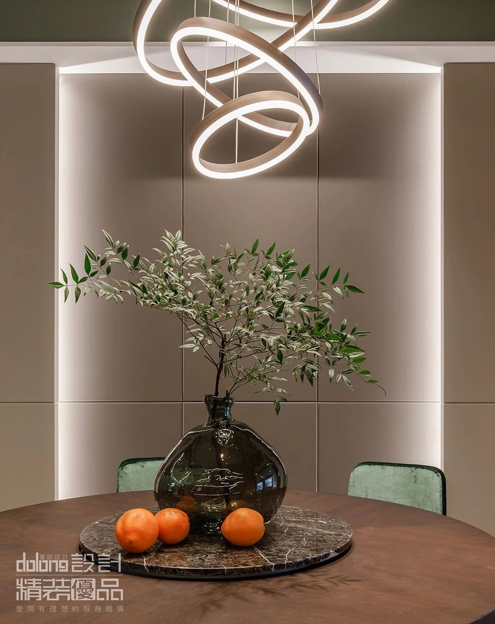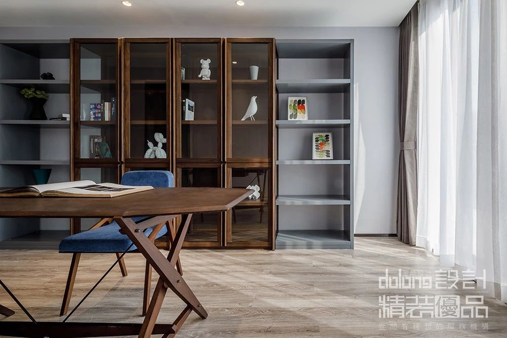 设计师捋以多样的自然材质元素,以优雅的比例与材质色彩变化,坚持在材质选择与细节设计的品位上,以多种蓝色贯穿空间,在丰富多层次的灯光效果下,构建了一个高质感和舒适感的生活空间,体现了一种“平静的奢华”。
