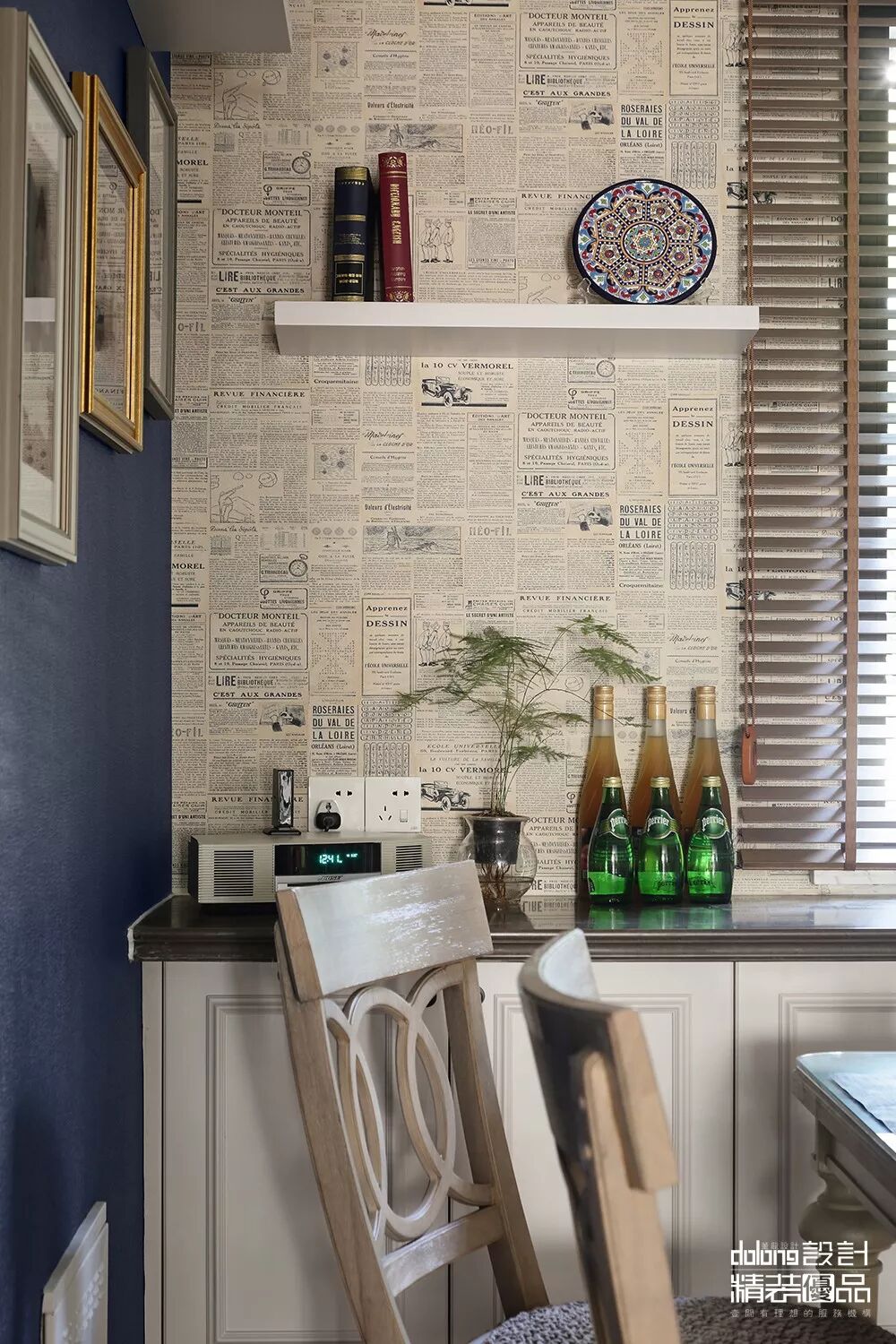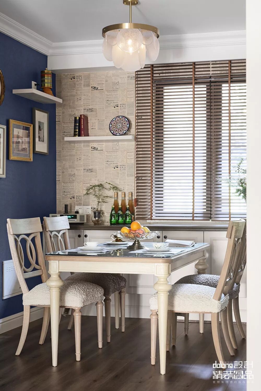 餐厅是家居生活的心脏,也是本案整个设计的亮点。整个空间非常具有画面感和视觉冲击力,犹如电影片中的定格场景。整体以温馨柔和为基调,顶部简单的吊顶突出灯具造型的艺术魅力。蓝色的底调和客厅的沙发背景遥相呼应,让空间的比例更加修长,精美的复古的挂画,也添加了餐厅的情调。