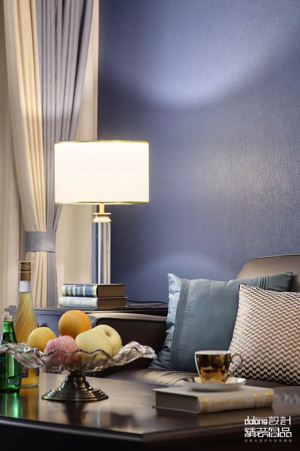 本案例是带三恒系统的精装修改造。平面布局和顶面结构没有做很大的调整。根据业主对家的喜好和愿望,我们最终选定的设计风格为现代美式风格,整体设计以蓝色为主调,为业主营造一个具有简洁、淡雅、沉稳兼跳跃、活泼的居住空间。