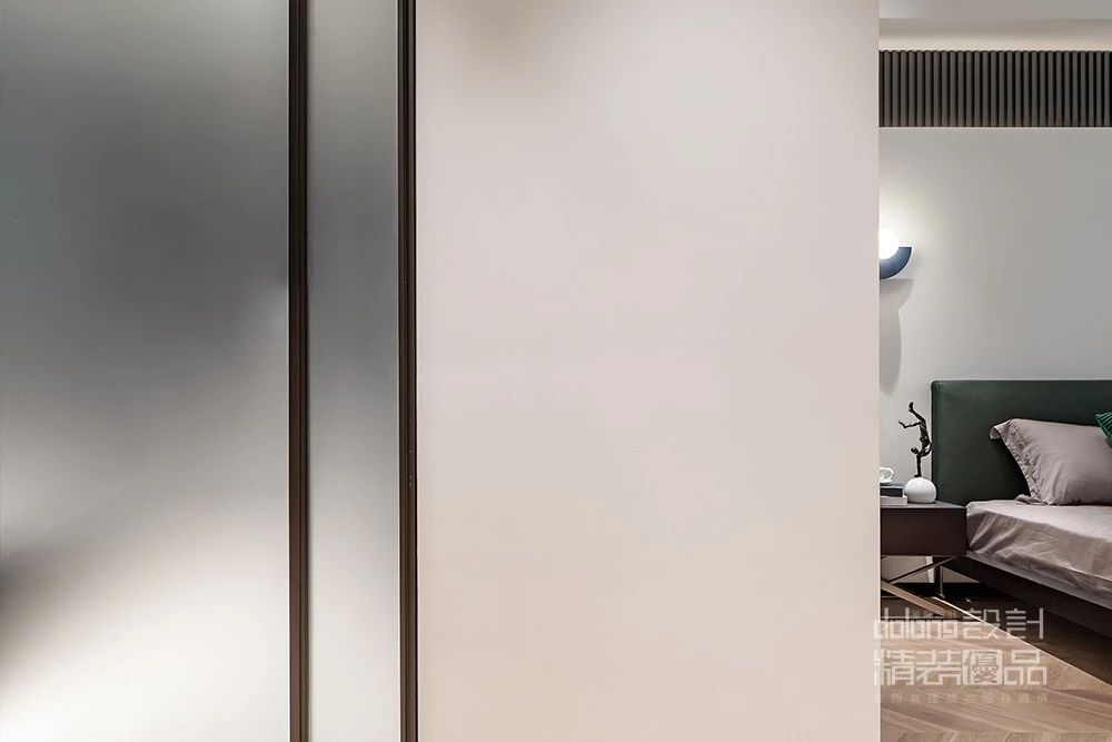 卧室背景墙卧立的L型设计,稳重优雅不失新意,与餐厅的立面呼应成趣。