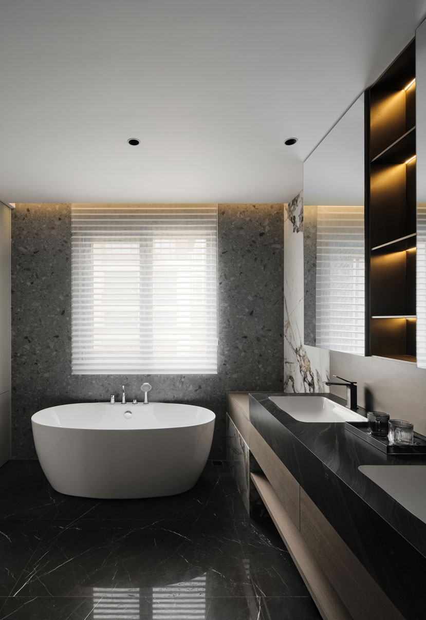 纵伸的线条从公共区域沿袭至此,创造出居所的生命动态与和谐统一。生活本就是一场流动的艺术,空间不仅是一个睡眠容器,更承载着居者生命进程中的记忆与故事。