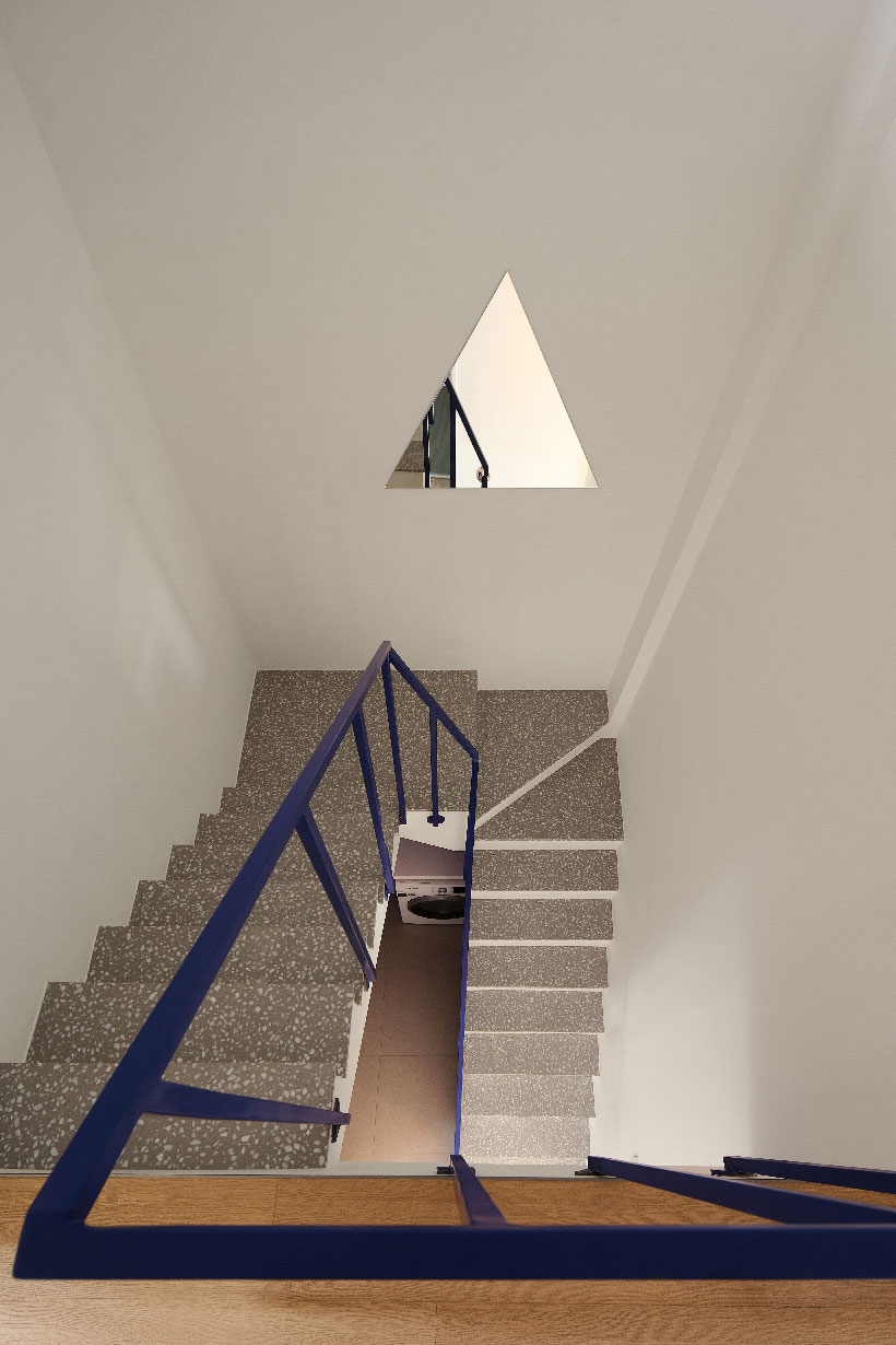 体块与色彩的介入,将楼梯或隐或显地呈现在起居室内,隔而不断的流动艺术,衍生出多样的生活趣味。